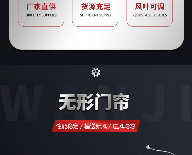 風(fēng)幕機(jī)900型;長(zhǎng)度900*145*185,功率100W,電壓220V,風(fēng)速9-11,風(fēng)量1310,噪音50,適合安裝高度不超過(guò)3米。